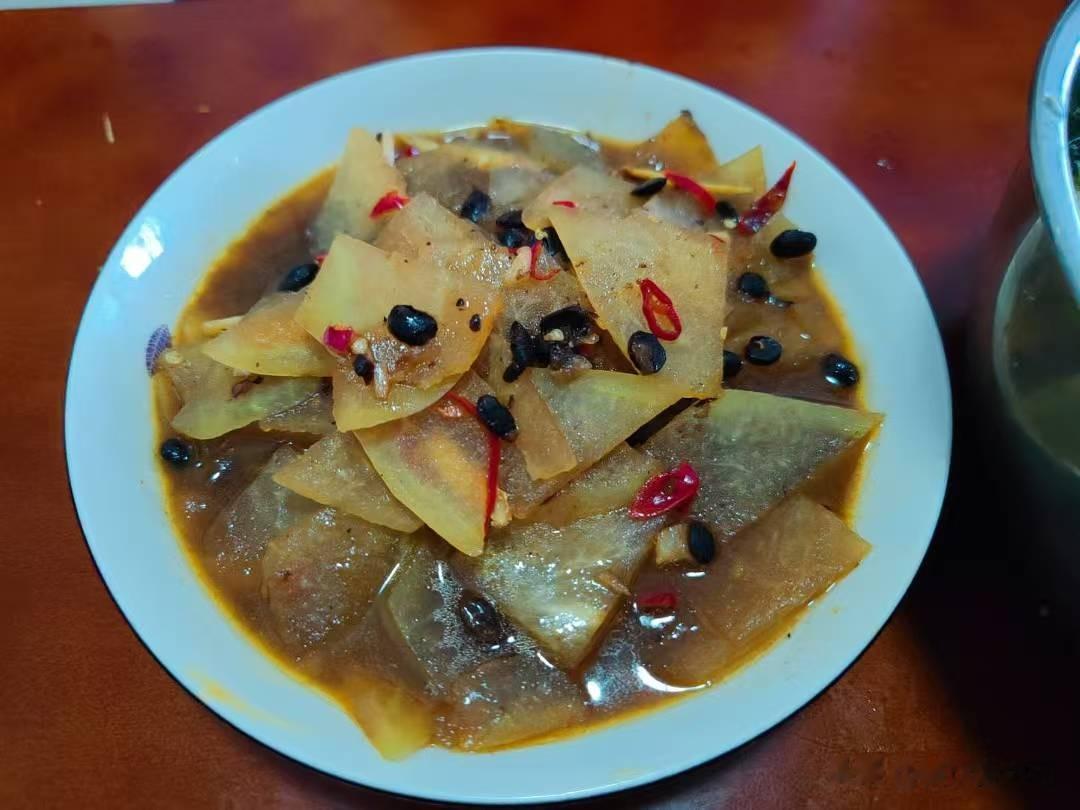 首先是一道豆豉炒冬瓜,这个菜的成本非常低,才1块钱,这个冬瓜晚上去超市买的8毛钱,豆豉2毛钱左右。