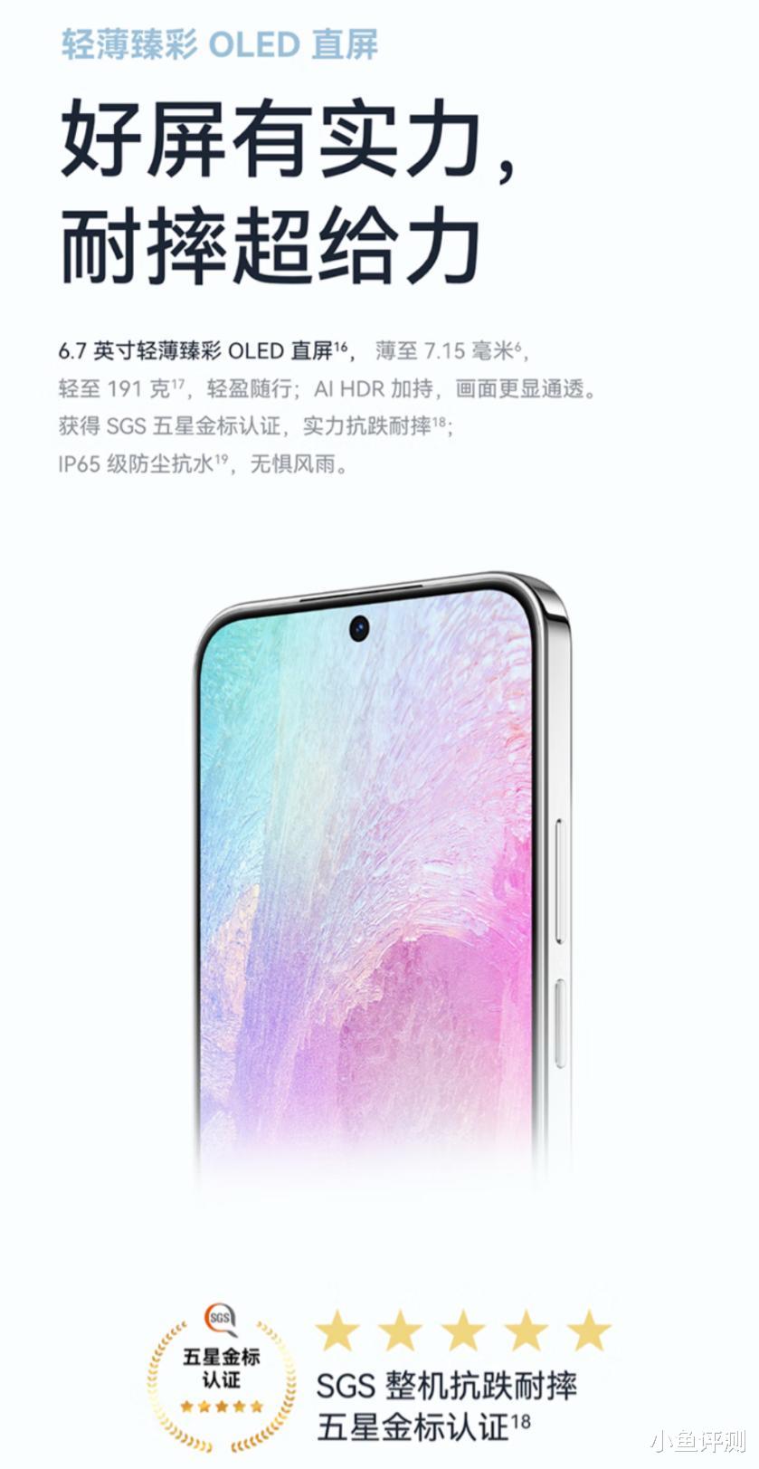 7.15mm超薄机身搭配冰晶蓝、凝霜白、羽砂黑三款高颜值配色,星耀环设计辨识度拉满,拿在手里轻盈又不失质感,通勤放口袋毫无负担。