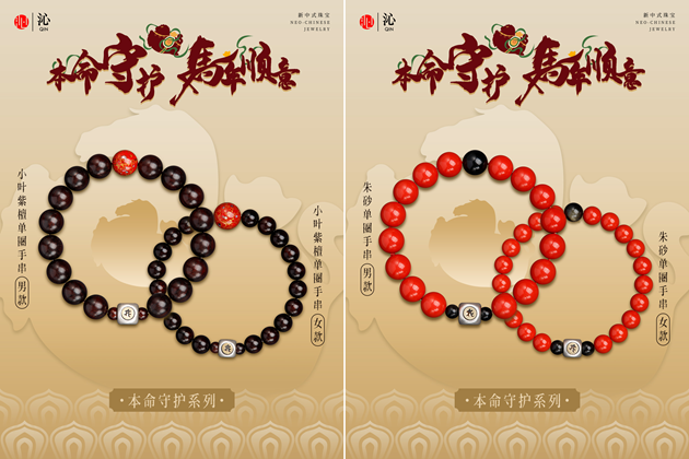 深耕生肖守护文化,本命守护神系列以“本命守护、马年顺意”为核心诉求,系列精选高纯度朱砂与优质小叶紫檀两大天然材质,朱砂款搭配矿闪晶莹的黑曜石,红黑配色大气沉稳;小叶紫檀款缀以红色大漆珠,木质温润雅致,每一处材质皆经精挑细选。设计上融入代表生肖本命守护神符号的银方珠,将“平安顺遂”的美好祈愿具象化,简约大气的款式不挑穿搭场景,12mm男款、8mm女款的细分设计更可搭配成情侣款,无论是守护自己还是赠予亲友,都是传递真挚心意的优选,让守护与祝福随身相伴。