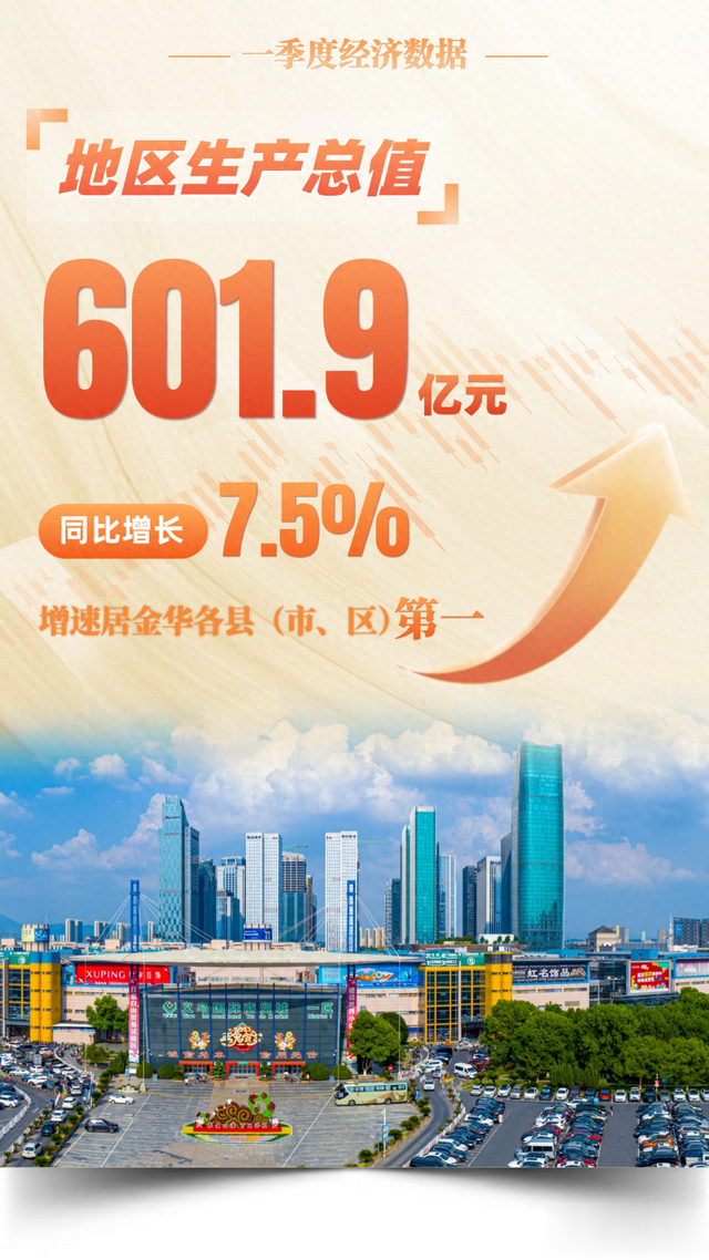 近日,2025年一季度义乌经济数据公布。根据地区生产总值统一核算结果,一季度义乌全市实现地区生产总值601.9亿元,按可比价计算,同比增长7.5%,分别高于全省(6.0%)、金华(6.6%)1.5个和0.9个百分点,增速居金华各县(市、区)第一,全省“十七强”县(市、区)第三。