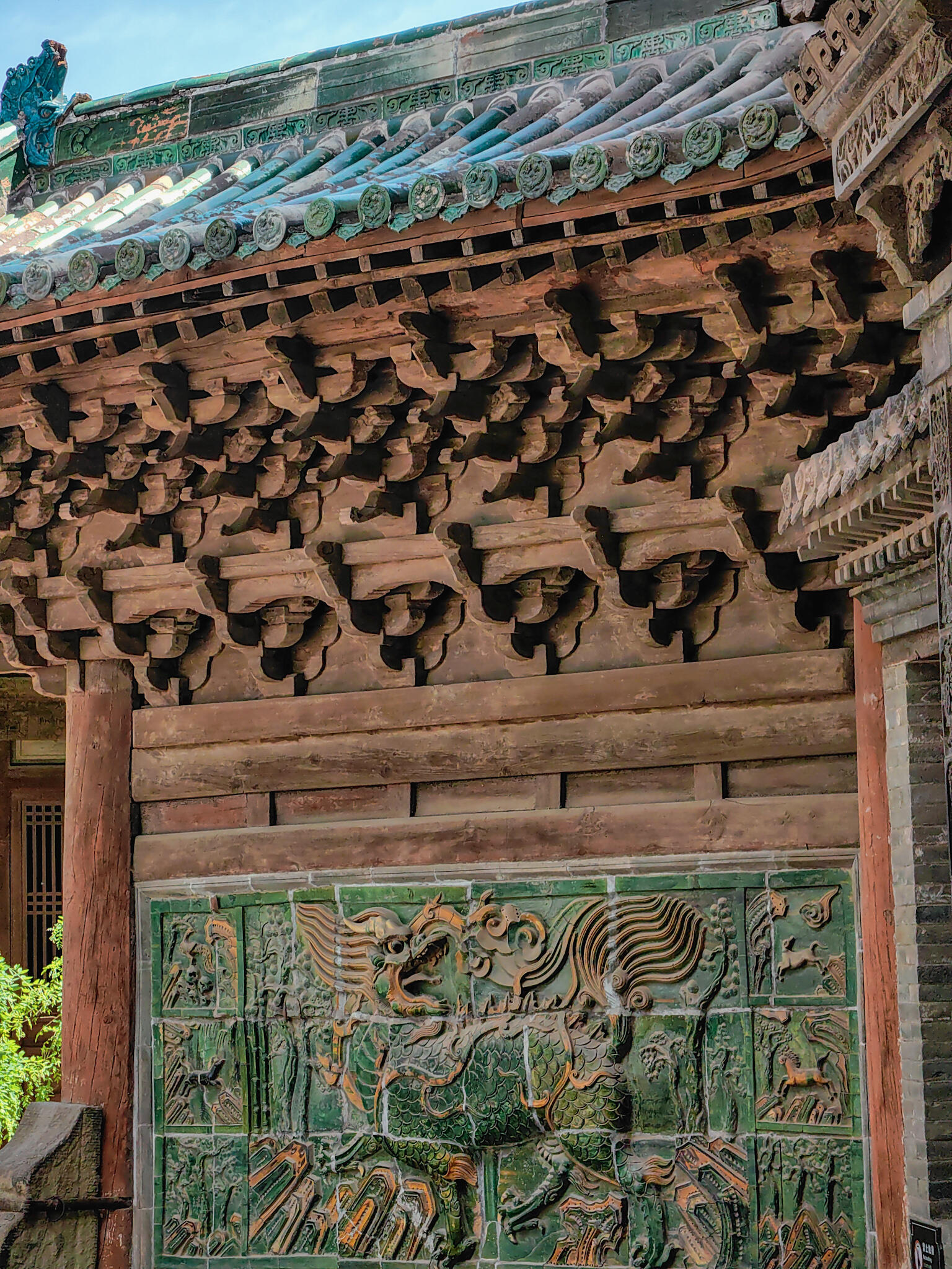 细细观察,会发现不同朝代的建筑语言在此交织:元代的梁架带着粗犷的原木痕迹,明代的隔扇窗棂已出现精致的"步步锦"纹样,清代的墀头砖雕则满是"福禄寿喜"的吉祥符号。最妙的是戏台与大殿之间的"过殿",雨天可作观戏的廊厅,晴天则成为贯通南北的通道,这种"功能随需而变"的设计智慧,正是中国古建筑"以人为本"的最佳注脚。