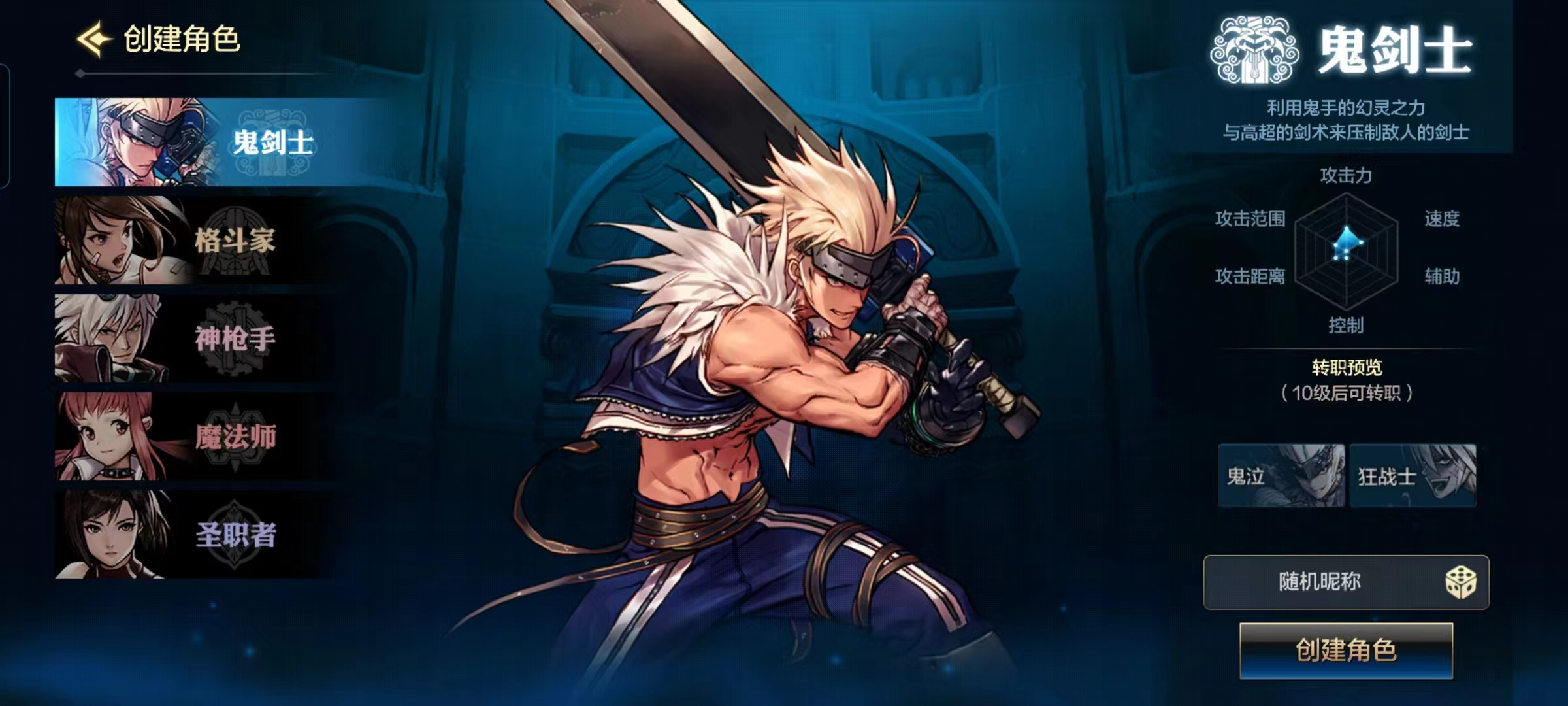 在游戏开始的时候可以选择五个经典职业,分别是鬼剑士、格斗家、神枪手、魔法师和圣职者这五个,千禧选择的是鬼剑士,作为DNF的代表,不光帅气而且技能华丽。