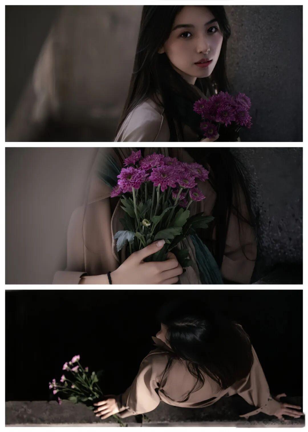 极简素色的穿搭则是另一种极致的表达。纯黑或纯白的宽松长裙,面料垂坠感强,仿佛是流动的诗篇。在红砖墙、空中廊桥等色彩对比强烈的场景中,人物穿着这样的服装,成为了画面的 “情绪支点”。通过简单的肢体语言,如抱臂、低头等,就能传递出孤独或沉思的情绪,让整个画面充满了静谧与深邃的美感,仿佛时间都为这一刻静止。