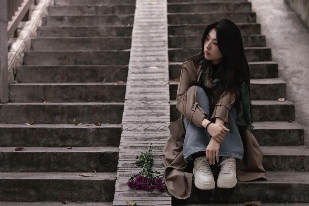 (二)阶梯巷弄:行走的情绪动线象岗山的阶梯巷弄,是社区的脉络,也是情感的通道。每一级台阶、每一条小巷,都承载着居民们的生活记忆。象岗山 13 号的阶梯,是电影同款取景地,单棵乔木立于台阶右侧,就像一位忠实的守护者。人物坐在中部台阶上,低头拨弄衣角,仿佛在回忆着过去的点点滴滴;或者让人物沿台阶缓行,步伐缓慢而坚定,摄影师以平拍的角度捕捉步伐的韵律,午后的光斑洒在石阶上,形成一片片金色的碎片,营造出一种 “时光漫步” 的静谧感,让人仿佛穿越回了那个纯真的年代。
