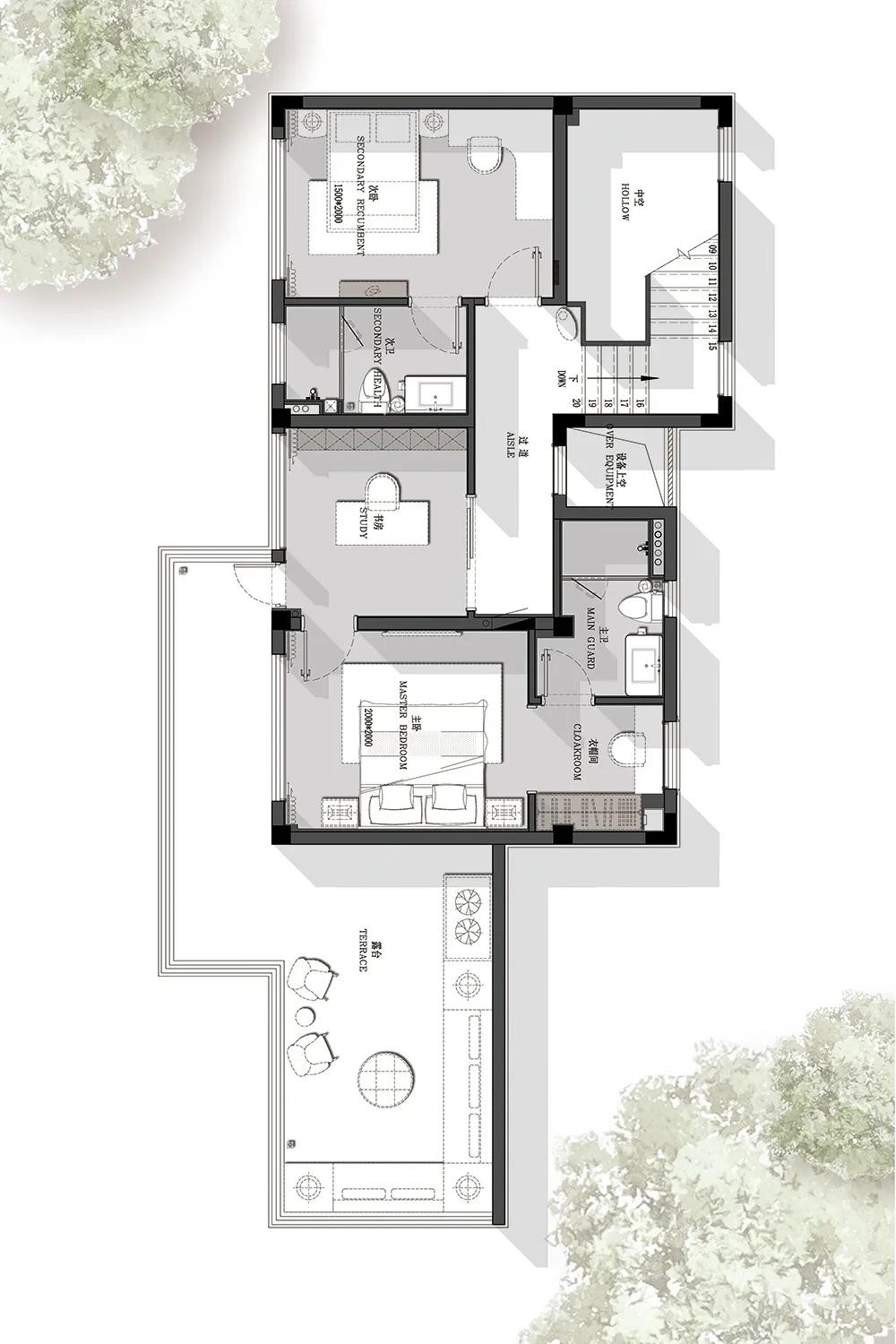 最完整的家的形态,是每位成员都可以在这里找到适合自己的位置,三代同堂,家族世代和谐共处,恰如自然生生不息。走进老人房,便能感受到一份处事不惊的温情与从容,与此同时还有一种闲云野鹤之意。
