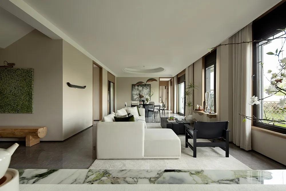 空间以平和的叙事节奏,书写着一首缓缓流动的诗。黑与白,是江南诗性深沉的底色,是山水的颜色,是东方美学中娓娓道来又千变万化的墨色,正是这样的纯粹中和,演绎出自然之居最本质的美。
