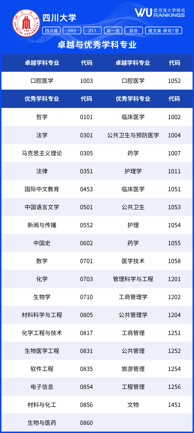 四川省各大学卓越与优秀学科专业