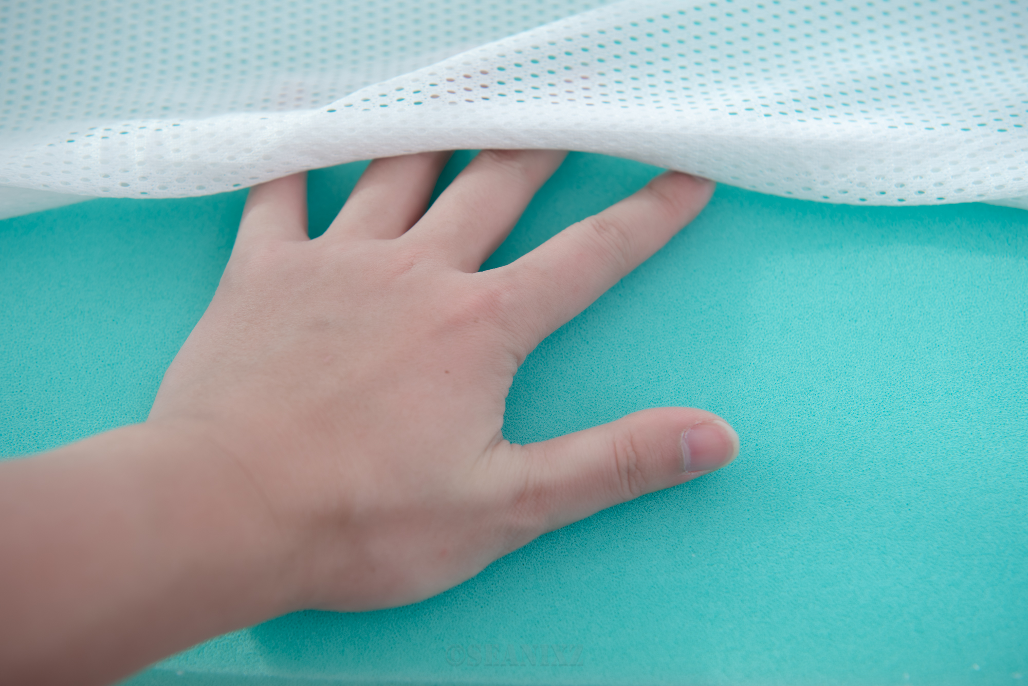 ● 家里3岁小宝一般都是仰卧睡姿,可以使用C-B-A组合模式,3D air材料在最上层提供较硬的脊柱支撑,引导脊柱变直;