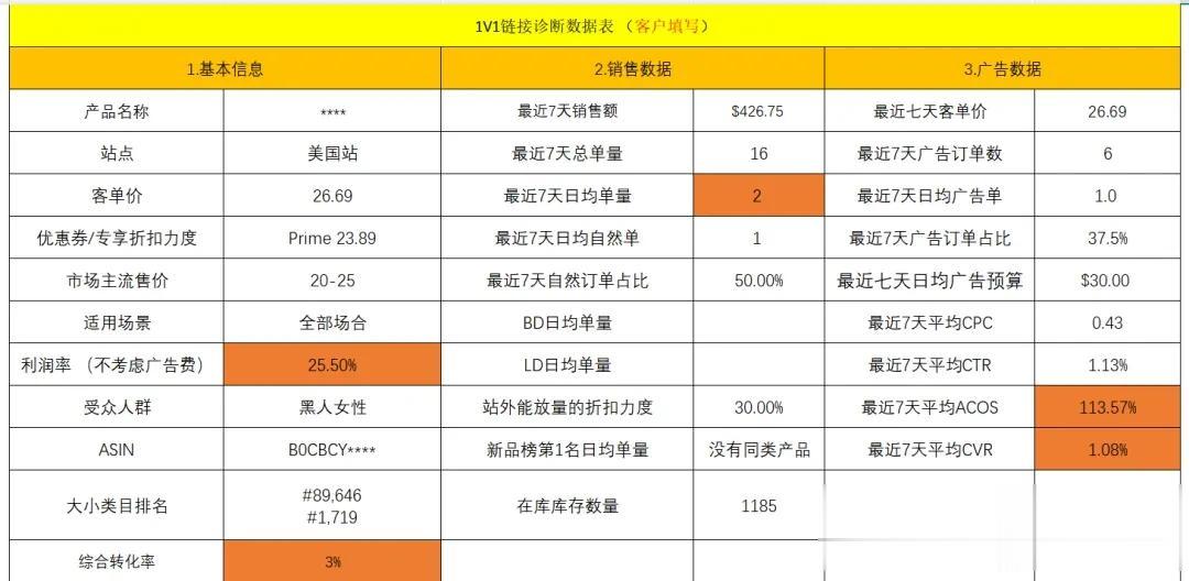 最近不少卖家发来链接诊断表,让我帮忙分析运营现状。