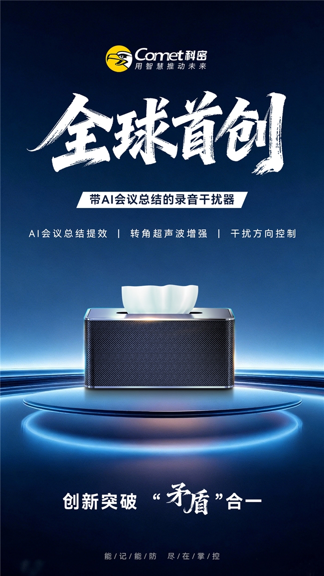 在商务洽谈中,我们是否常陷入“防录”与“纪要”无法兼得的两难困境?即便备齐防录设备与纪要工具,来回切换仍手忙脚乱。如今,深耕办公安防领域33年的科密,以技术创新打破行业局限,重磅推出迭代款科密RP60Ⅱ纸巾盒录音干扰器——市面唯一技术与功能双突破的攻防一体设备,让商务沟通的安全与效率实现真正两全。