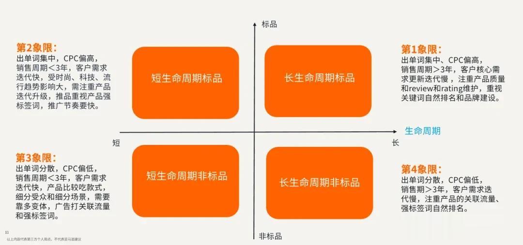 第4象限第是长生命周期非标品,生命周期长且出单词分散。