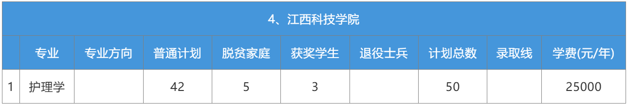 下表为江西科技学院专升本医学类招生计划及学费汇总,有护理学1个专业招生: