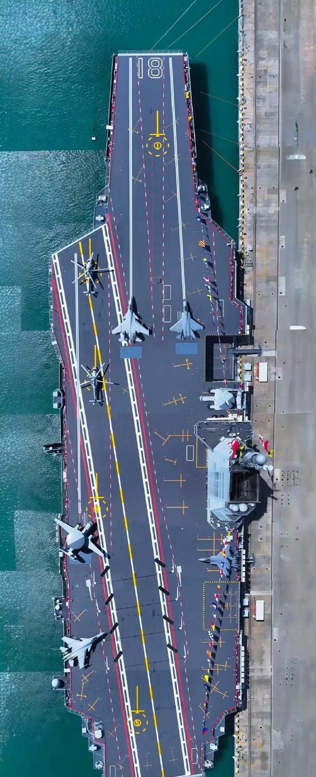 福建舰是中国完全自主设计建造的首艘弹射型航空母舰,采用平直通长飞行甲板,满载排水量8万余吨。它是全球首艘采用常规动力电磁弹射技术的航空母舰。三条电磁弹射通道齐刷刷排在甲板上,能把歼-35隐身战机、歼-15T重型战机、空警-600固定翼预警机统统送上天。