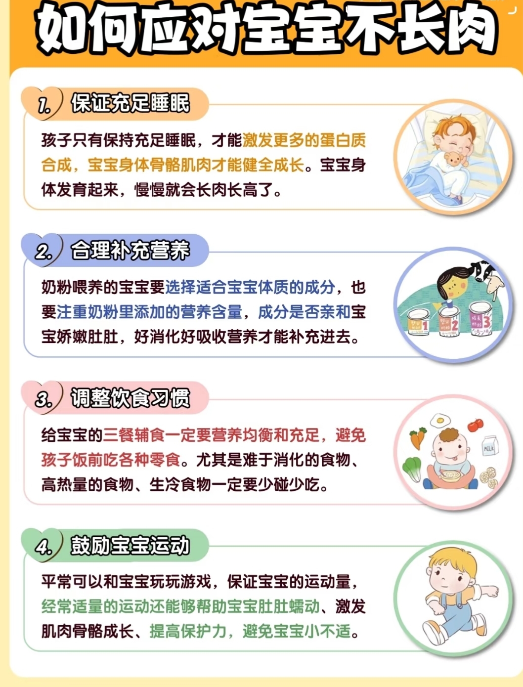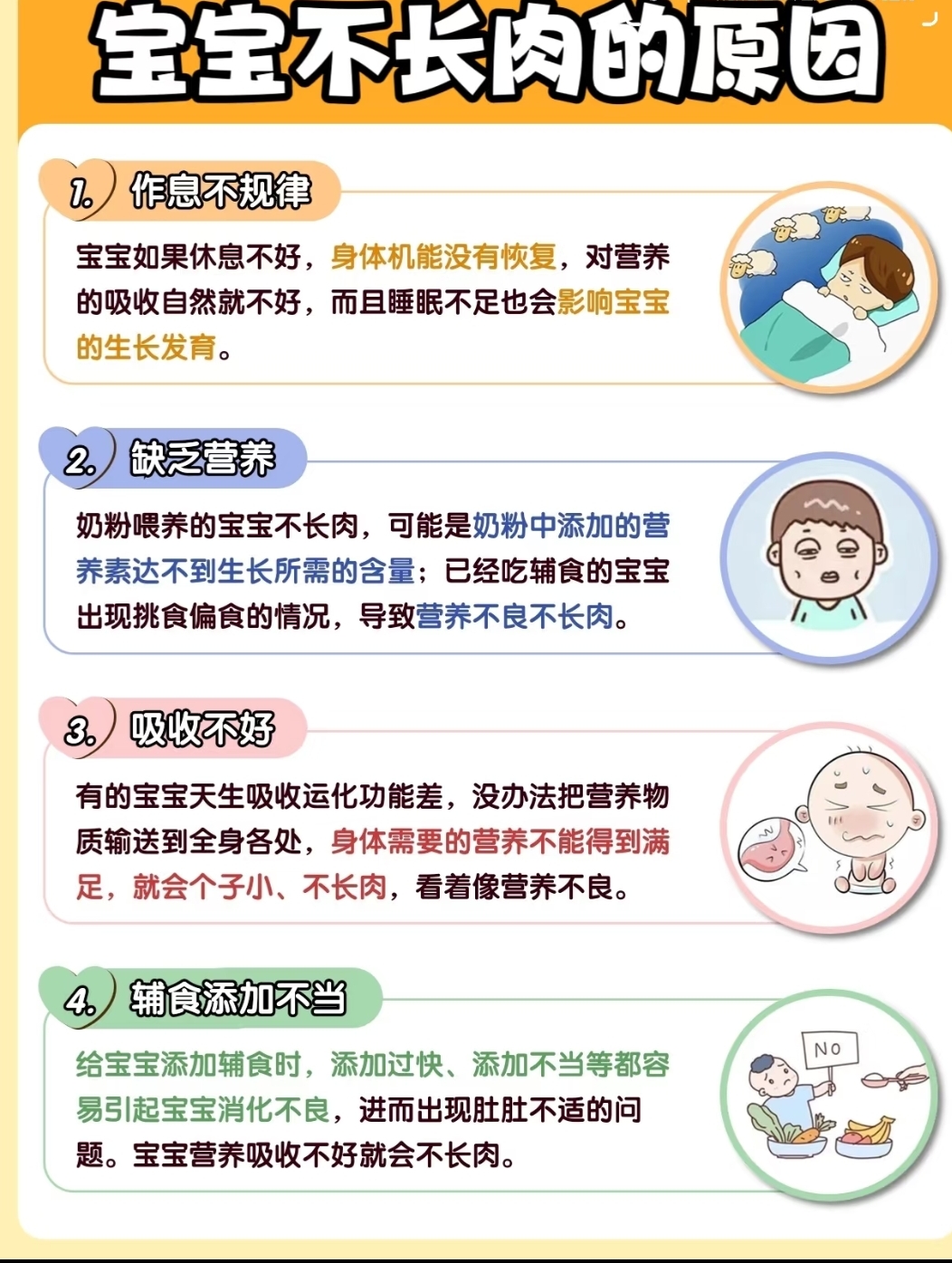 宝宝不长肉,根源通常集中在“吃、吸、耗、病”这四个方面。