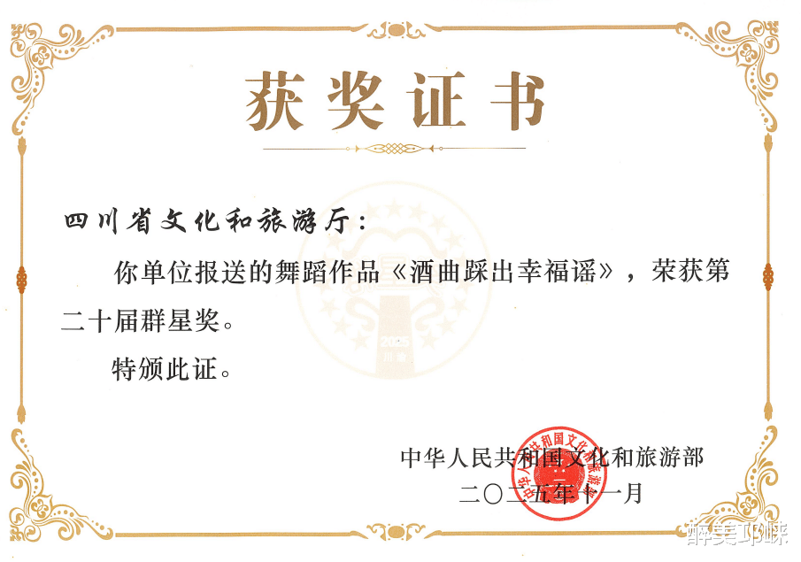 11月4日,由文化和旅游部、重庆市人民政府、四川省人民政府联合主办的“大地情深”——全国优秀群众文艺作品展演中,邛崃市精心打造的女子群舞《酒曲踩出幸福谣》,以浓郁的地域文化特色、鲜活的非遗表达和精湛的艺术呈现,成功摘得第二十届“群星奖”!