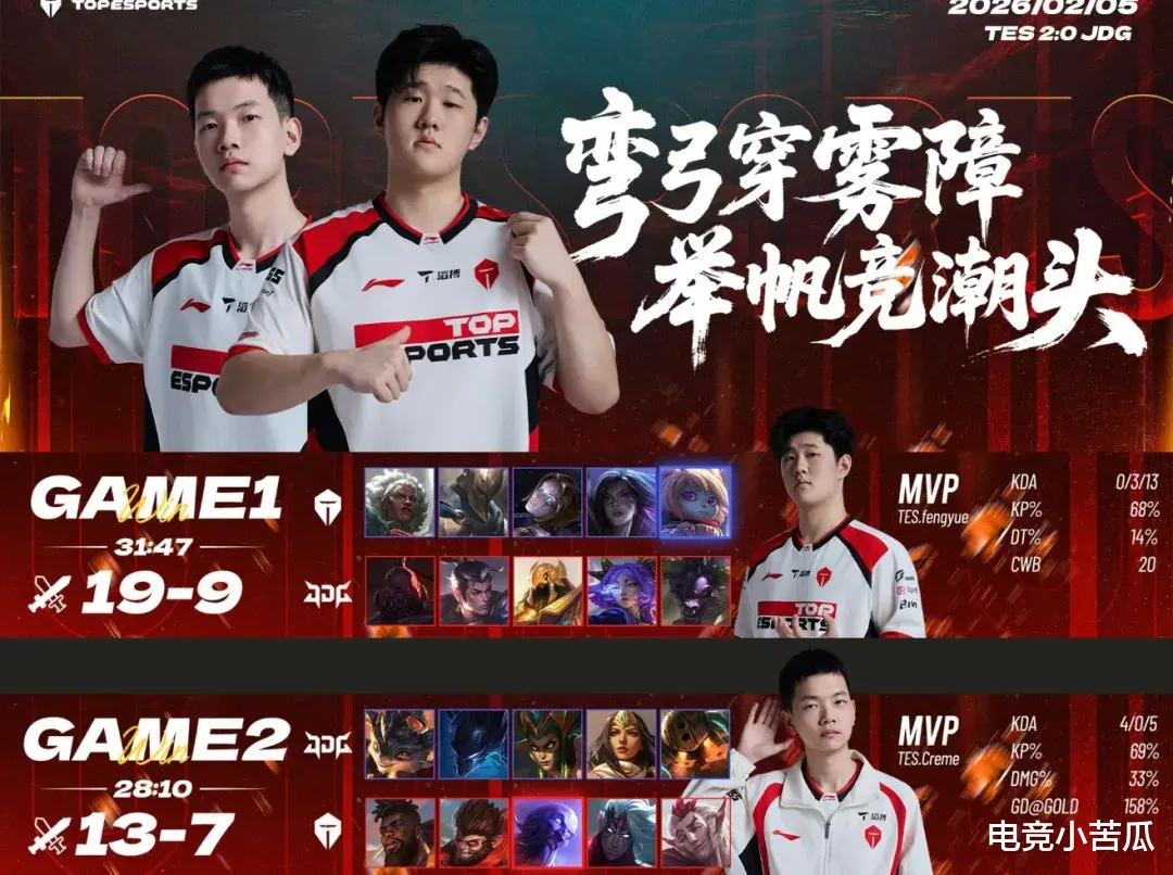 回顾这轮对决,TES的中路和辅助发挥太出色了,第一把发条和波比的完美发挥,团战真的太赏心悦目了,就感觉JDG完全没有在意波比,反正波比总是能够将关键人物击飞,这个波比真的有点东西的。