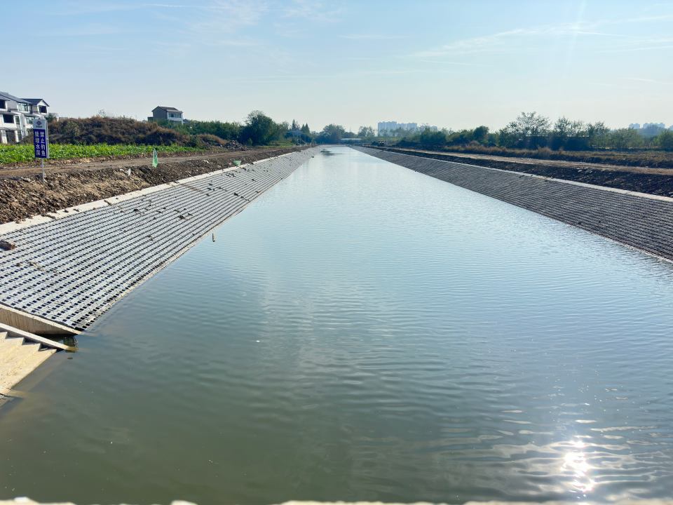 施工中,项目团队以技术创新为绿色发展赋能,推动治理从基础达标向功能跃升跨越。针对幸福河淤泥质河床易塌陷的难题,创新采用“预制混凝土管桩+杉木桩”复合工艺,既解决了边坡稳定性问题,又为小型水生生物打造了“水下家园”;沉湖二站进水渠实施“清淤+混凝土护坡+生态砖护坡”组合方案,同步提升行洪能力与水体净化效果,这些由政企联合攻关的技术成果,既保障了工程质量,又降低了后期运维成本。