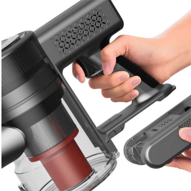 戴森V10吸尘器采用标志性戴森配色,搭配水平式集尘筒设计,整体外观造型极具科技感。通过优化产品结构,配合符合人体工学的握柄设计,长时间使用更省力。而且产品配备一键清空尘桶功能,倒尘不脏手,打扫结束后也不用担心弄脏手。