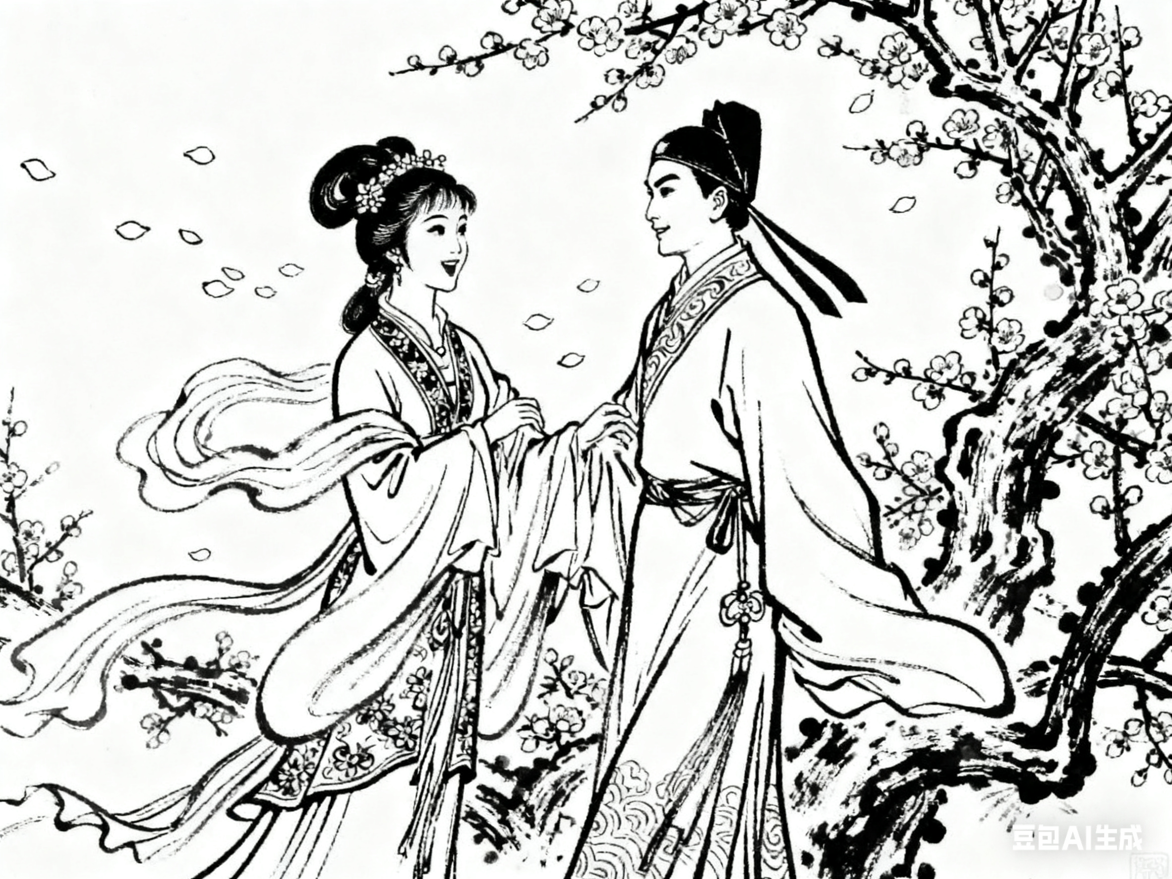 《牡丹亭》中的 “花”,是青春与爱情的象征。杜丽娘见 “牡丹亭畔,芍药栏边” 的花,感叹 “原来姹紫嫣红开遍,似这般都付与断井颓垣”,这里的 “花” 是她青春的镜像 —— 花盛开时热烈,却无人欣赏;她的青春美好,却被困在闺阁。她死后葬在梅花庵,梅花的 “傲霜斗雪”,暗示了她对 “情” 的坚守。《牡丹亭》的 “花”,是单一的、理想化的,代表着 “情” 的纯粹。