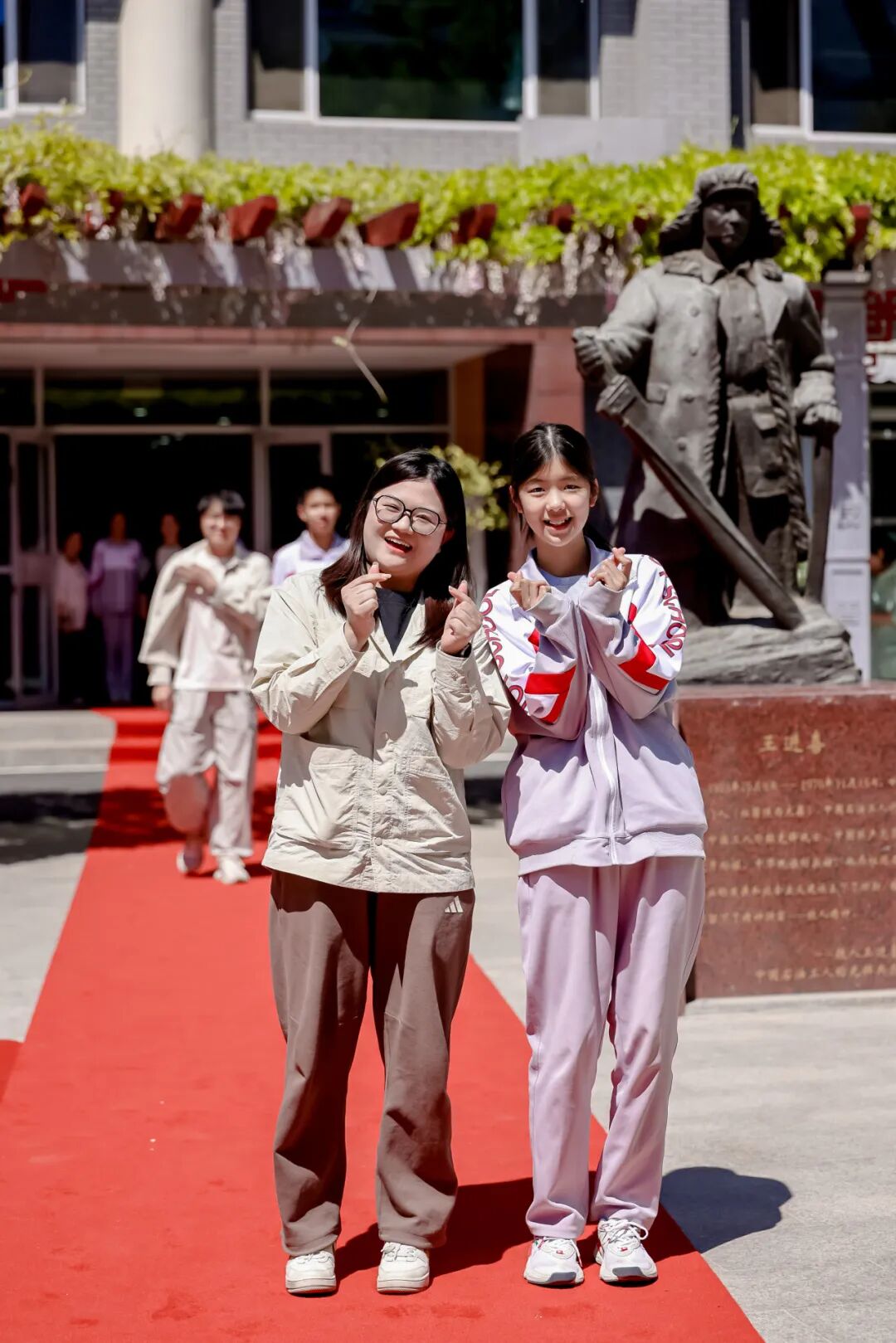 中午12:50,铁人广场。师生携手走上成长红毯,以仪式感致敬班主任。