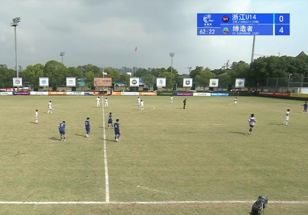 浙江U14队上轮输掉与申花的头名之战,本轮与缔造者争夺小组第二,打平基本就能获得小组第二名。可是浙江U14队上半场踢得一言难尽,防线连续告急以0-3落后对手。