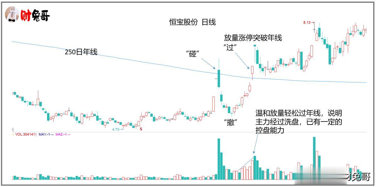 成交量:持续大幅放大(核心标志),需大量资金承接套牢盘卖压;突破确认:(1)收盘价站上均线至少2天,视为有效突破