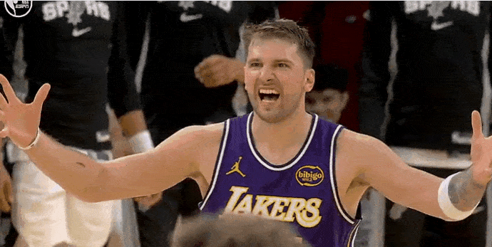 NBA常规赛,湖人对阵马刺的比赛正在进行中。第二节比赛,东契奇送出纵贯半场妙传八村未打进。