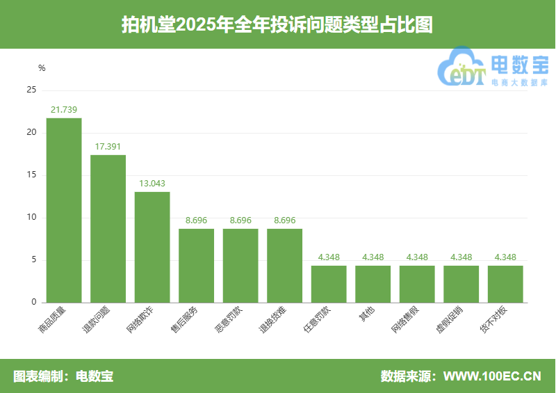 2025年“拍机堂”涉嫌存在商品质量、退款问题、网络欺诈、售后服务、恶意罚款、退换货难、任意罚款、网络售假、虚假促销、货不对板等问题。