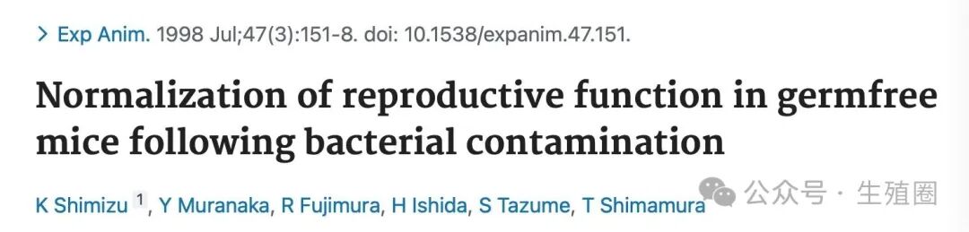 Normalization of reproductive function in germfree mice following bacterial contamination. Exp Anim. 1998 Jul;47(3):151-8. doi: 10.1538/expanim.47.151.