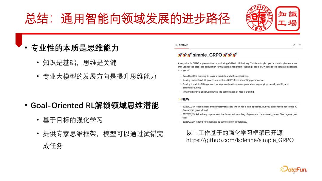 下面将与大家分享我们近期在领域大模型深度思维能力方向的一些研究进展,其中会包含两个核心要素: