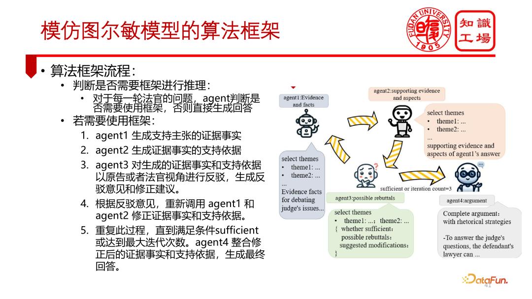 实际上,对于这些传统模型来说,我们同样可以利用这些传统模型来构建相应的智能系统。正如这个研究是基于传统的图尔敏抗辩模型构建了专门的 Agent,该 Agent 包含多个功能模块,例如举证模型能够在识别到举证需求时自动执行举证操作。