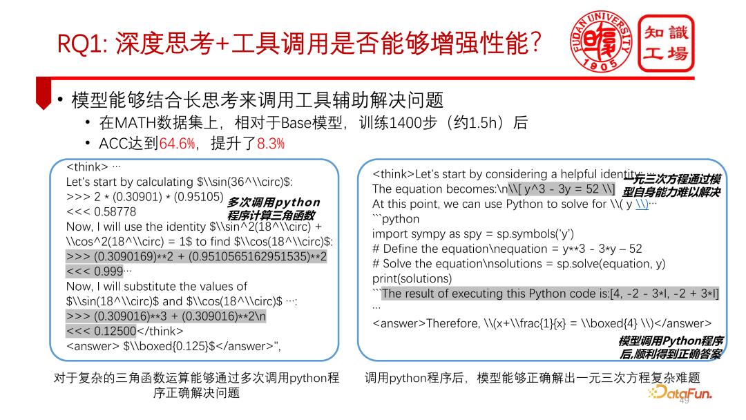 4. RQ1:深度思考+工具调用是否能够增强性能?