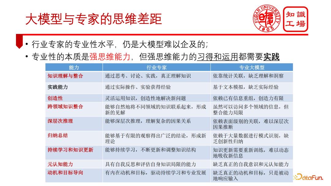 从深度思考能力对模型的要求而言,其实重点是往理性思考能力方面发力,包括现在让大模型做的逻辑问题、数学问题,以及在很多行业中专业问题,这超越了单纯的知识获取与表达能力范畴。