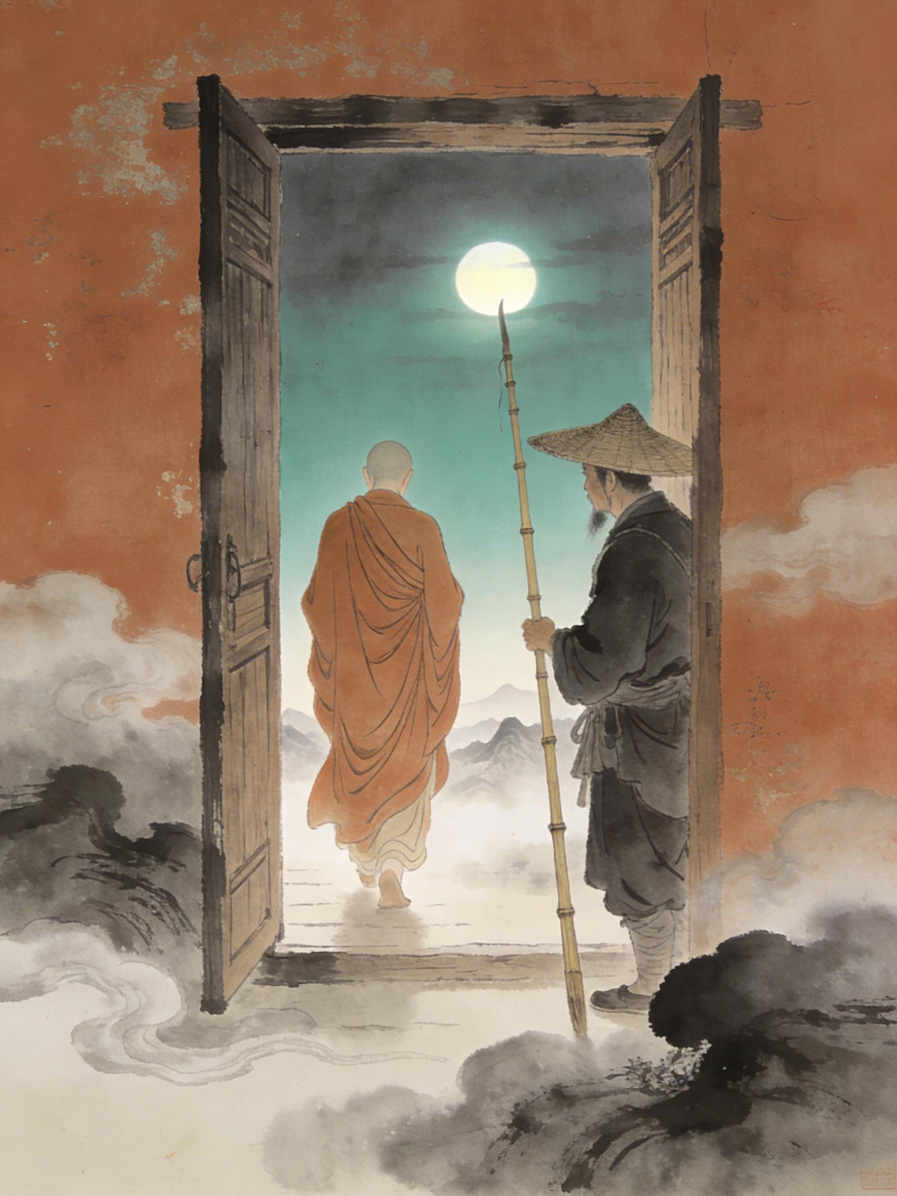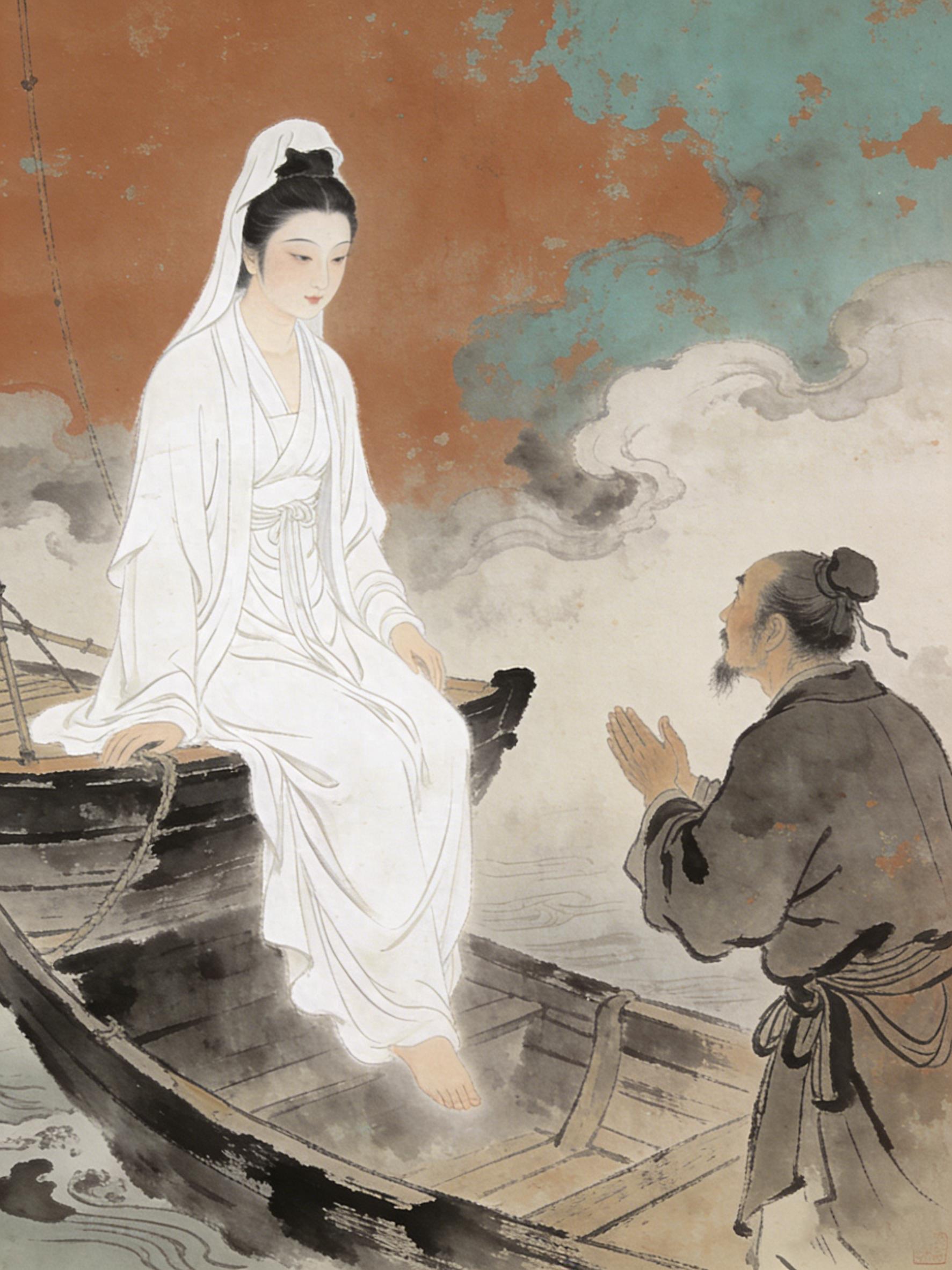 有天夜里,月色皎洁,渔人划着小船在湖上漂泊。忽然听见岸边有人喊着要渡江,他便把船划过去。船还没靠岸,那人竟轻飘飘地落到了船里。渔人抬眼一看,是个尼姑,约莫十七八岁的年纪,穿着素白的衣裳,容貌格外秀丽。