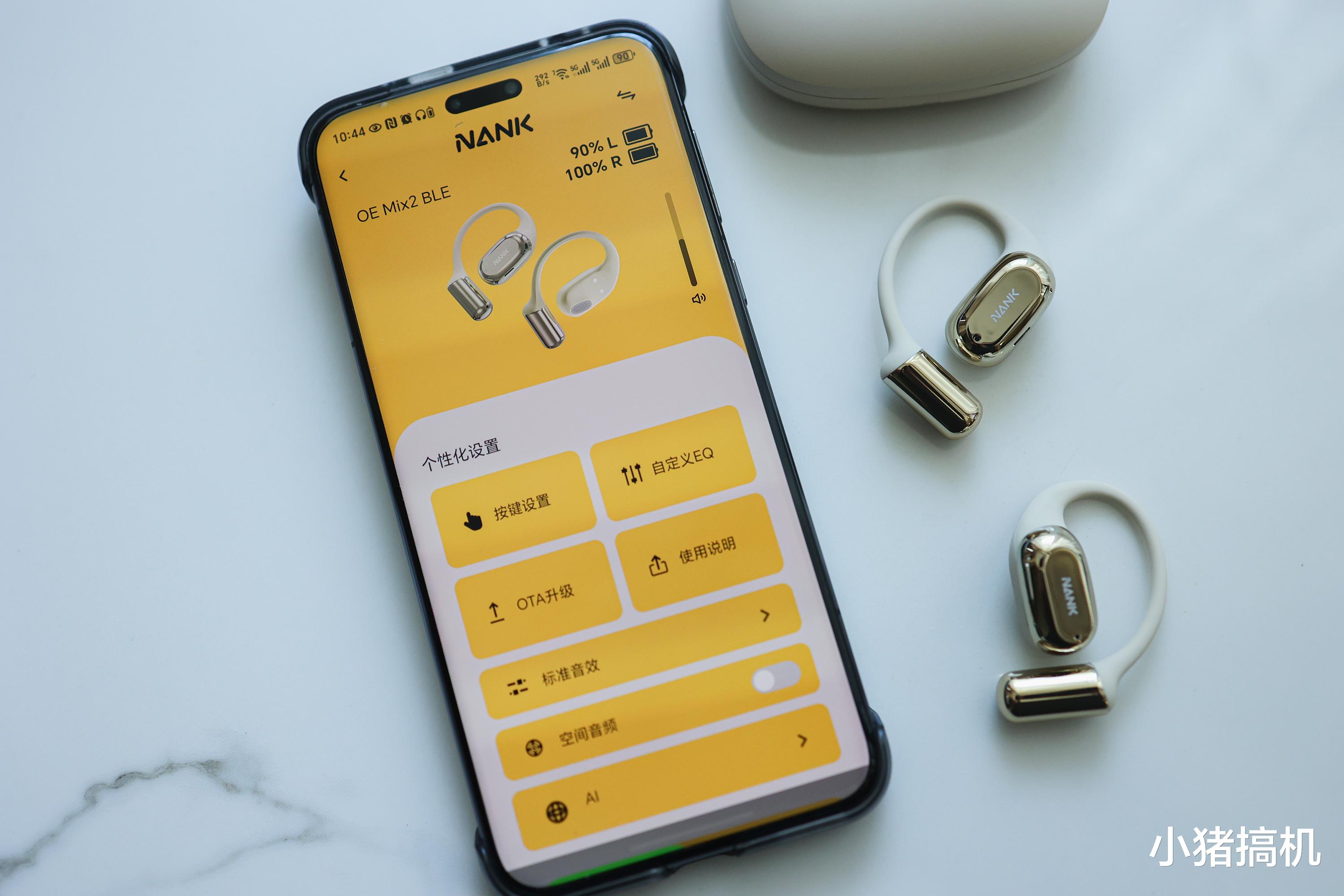 通过手机上NANK专属的APP ,我们可以可以轻松实现南卡OE Mix 2的音效模式切换、空间音频调节、AI 语音功能开关、固件在线升级等操作。APP的操作界面直观、灵活,各种设置可以满足我们不同场景下的个性化需求。