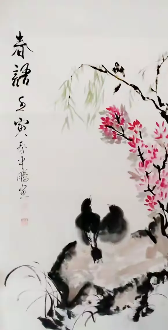 这种笔墨色彩的运用不仅能够准确地表现花鸟的特征,还能够赋予作品以独特的艺术韵味和观赏价值,使观者感受到画面的立体感和动态感,增强艺术的表现力和感染力。
