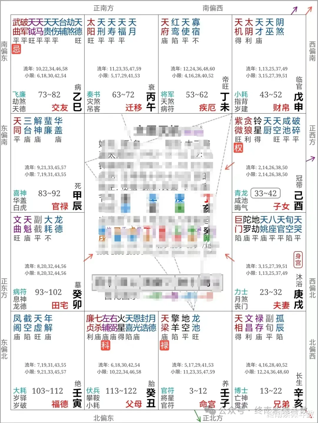 人生四季春夏秋冬,禄权科忌在我们的命盘中有其固定排布,案例112的命盘,其虽然交友方面不得力,但却很有贵人的扶持,因其生年科在父母宫,来因宫是福德宫和命宫,所以天生得领导、长辈的抬爱和培养,当然也包括自己的父母长辈啦。