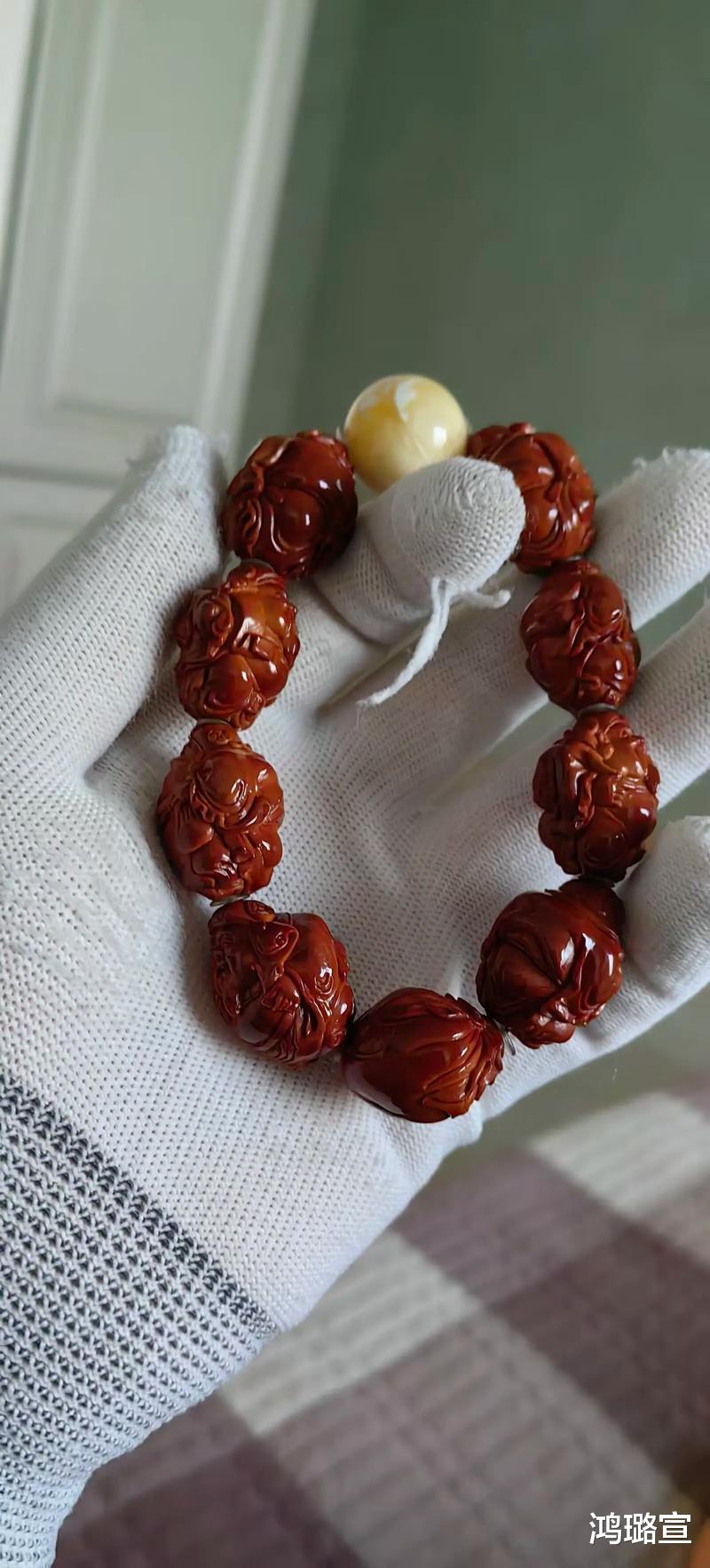 在文玩市场经历低谷期时,橄榄核却凭借其独特的盘玩变化能力与非物质文化遗产的微雕技艺加持,逆势崛起,成为颜值与收藏价值双双登顶的王者品类。一串红润通透的名家雕刻橄榄核作品,无疑是朋友圈爆赞的终极利器。