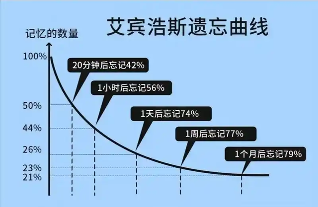 德国心理学家艾宾浩斯发现的遗忘曲线告诉我们:遗忘从记忆那一刻就开始了,而且最初遗忘速度最快。