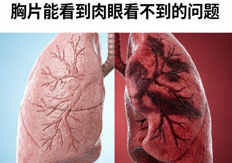 听诊器只能听表面声音,胸片才能看清肺部真实的感染、阴影、异物和结构问题。