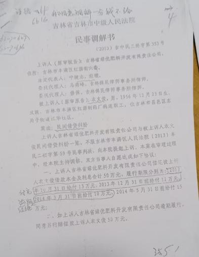 案件二审期间,吉林中院提出调解方案:绿优公司偿还50万元本息,逾期则追加50万元赔偿。但宁建志拒绝该方案。衣文俊称,此后法院在未重新开庭的情况下再度调解,其代理人在未参与协商过程的情况下被要求签署调解笔录。调解书约定逾期需追加赔偿,但截至2014年,被执行人仅支付25万元,剩余款项及赔偿均未履行。