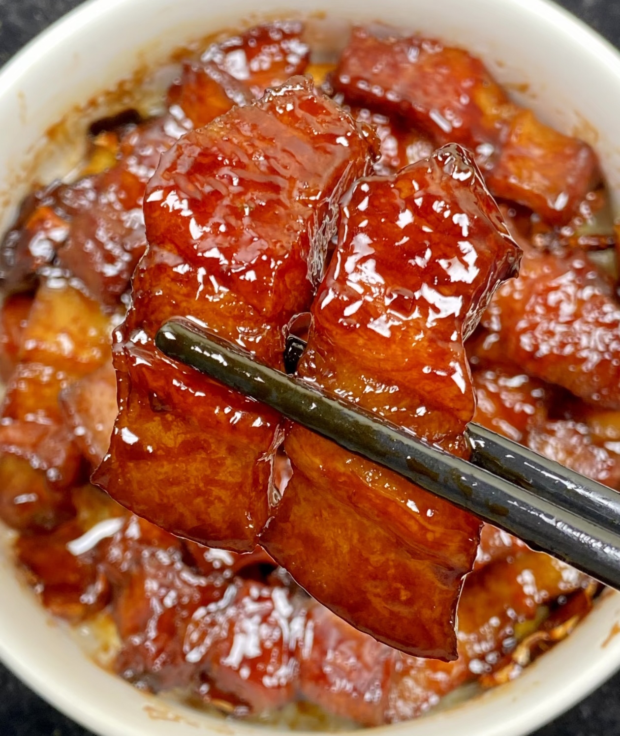 慢炖是红烧肉软糯入味的核心,这一步急不得,需要耐心等待。用最小火慢炖50分钟,让肉块在汤汁里慢慢吸收味道,脂肪慢慢软化,瘦肉变得软烂,时间到了之后,打开锅盖,转成大火收汁。收汁的时候要不停翻炒,防止糊锅,直到汤汁变得浓稠发亮,紧紧地裹在每一块肉上,就可以关火出锅了。刚出锅的红烧肉,红亮油润,香气扑鼻,用筷子轻轻一夹,就能感受到肉质的软糯,咬一口,甜咸适中,肥油已经完全被煸出,只剩下满口的肉香,入口即化,连汤汁都能拌下两碗米饭。