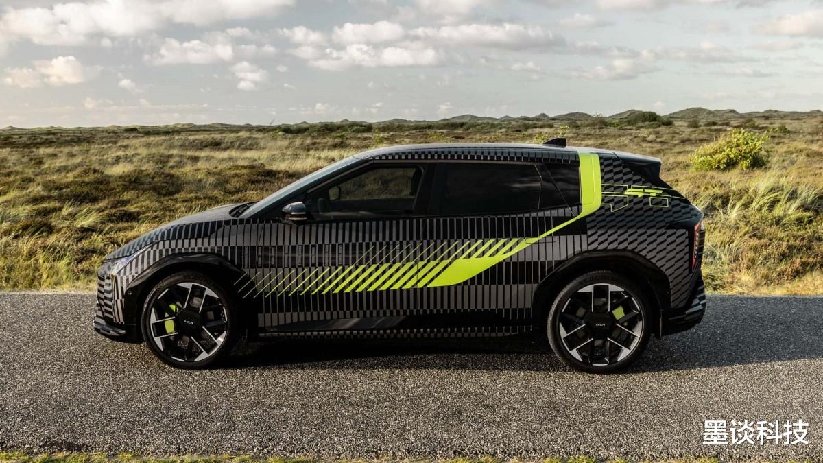 起亚此次发布的EV4 GT原型车采用了独特的"GT伪装涂装"。这种以黑色和霓虹绿数字图案构成的伪装设计,模拟了运动模糊的视觉效果,据官方表述旨在体现性能车型的"情感张力"。值得注意的是,这种特殊涂装将成为起亚未来所有GT测试车辆的标志性特征。