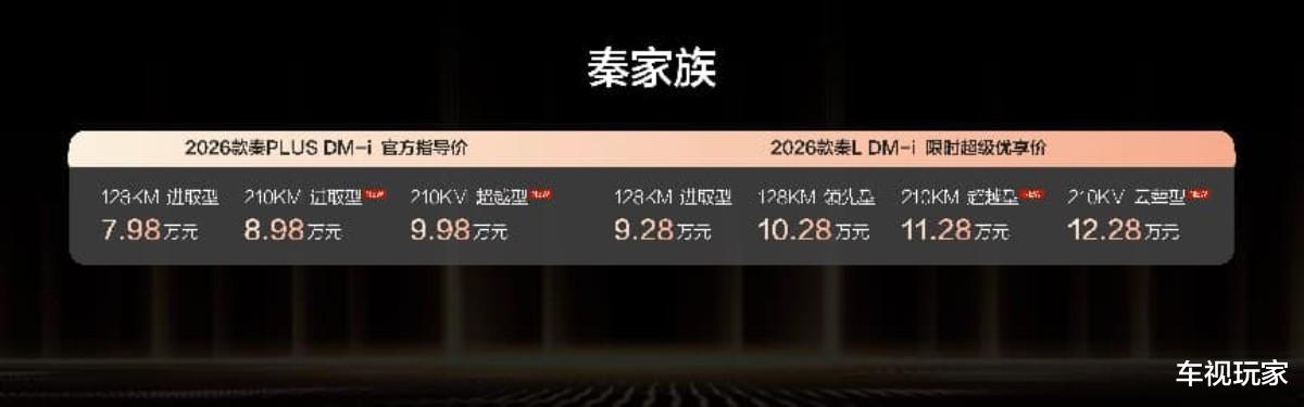 1月8日,比亚迪王朝网正式推出2026款秦家族210KM长续航版车型,涵盖秦PLUS DM-i与秦L DM-i两大系列,以8.98-12.28万元的售价区间,实现对紧凑型与中型插混家轿市场的全面覆盖。作为累计销量突破270万辆的明星家族,秦系列此次升级聚焦用户核心用车痛点,在续航、智能、舒适与安全等维度全面进化,再次刷新同级产品价值标准。
