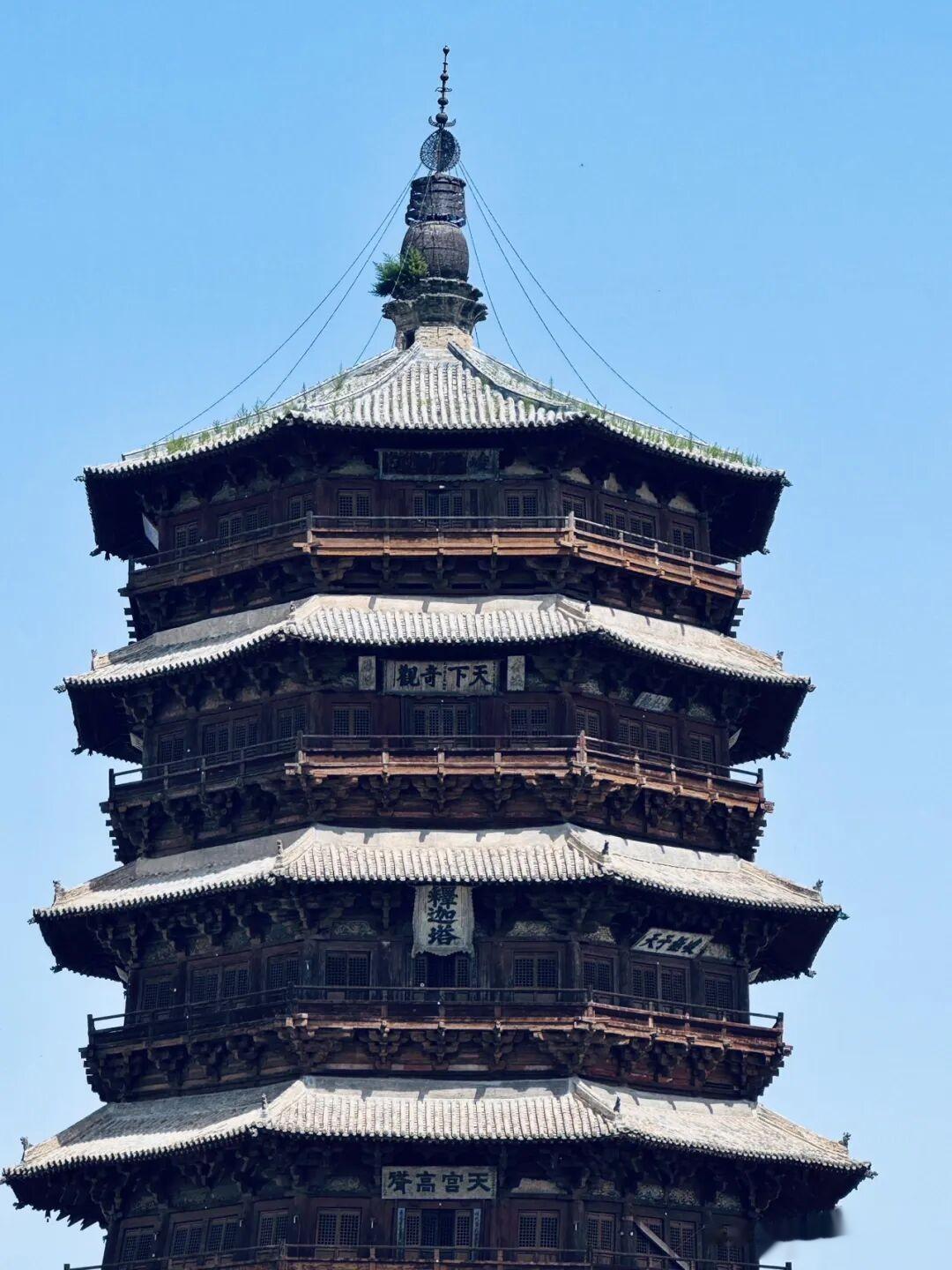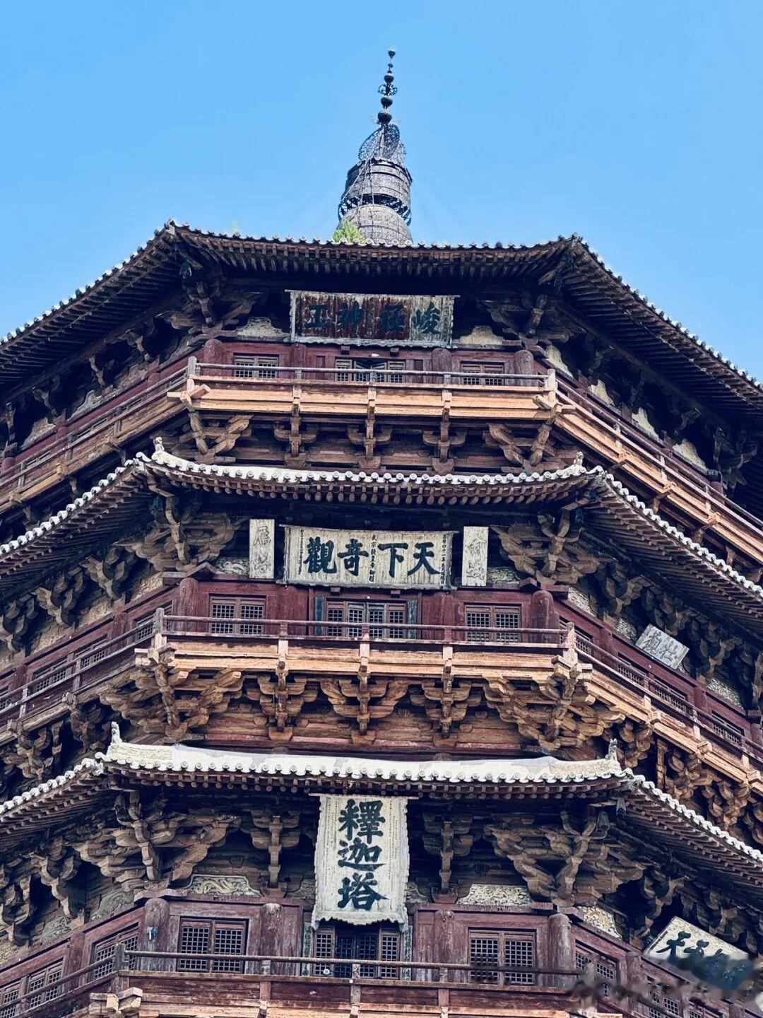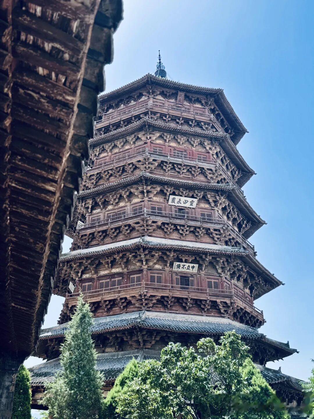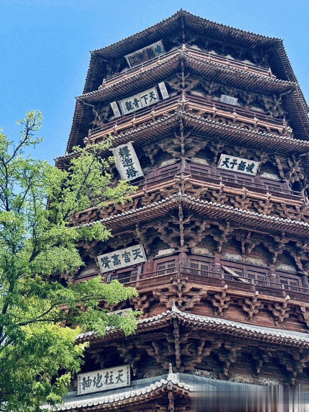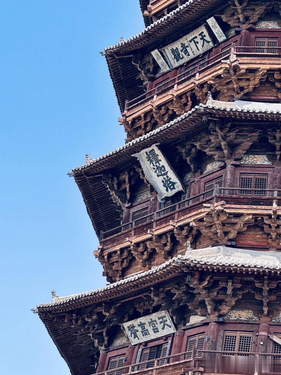 在真正站到应县木塔跟前之前,我听过太多关于它的描述,千年不倒、榫卯奇迹、世界奇塔,可文字再华丽,都比不上亲眼看见那一刻的冲击力,那种从脚底往上涌的震撼,根本没法用几句简单的话概括,这就是佛宫寺释迦塔,我们更习惯叫它应县木塔,辽清宁二年破土动工,公元1056年,一个距今快要逼近一千年的年份,就这么一座纯木造的高塔,在晋北的风里、土里、一次次天摇地动里,安安稳稳站到了今天,说它是个奇迹,一点都不夸张,甚至觉得奇迹两个字都有点轻了。我这次专程赶过来,就是想摸一摸这千年的木料,看一看那些藏在斗拱里的古人智慧,毕竟很多东西,隔着屏幕看一万次,都不如站在它脚下待上十分钟来得真切。