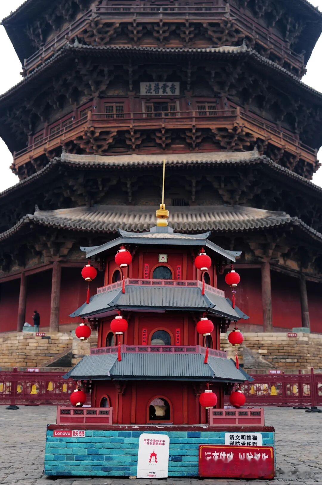 作为第一批全国重点文物保护单位,应县木塔的价值早就不用多说,可最近几年让它再次火出圈的,还有一个很有意思的身份,它是游戏《黑神话:悟空》的取景地之一,很多年轻玩家因为游戏慕名而来,想看一看真实世界里的木塔到底是什么样子,是不是和游戏里一样震撼,而我可以很肯定地说,现实里的木塔,比游戏画面更有分量,游戏里的光影再逼真,都复刻不出木头历经千年的纹理,复刻不出风穿过斗拱时的声响,复刻不出站在塔下那种被历史包裹的厚重感。很多人来了之后都会忍不住伸手去摸塔身的木料,虽然被保护着不能近距离触碰,可只是看着那些粗糙又坚实的木柱,就能感受到时间的重量,一千年,多少朝代更迭,多少人事变迁,这座塔就这么静静地看着,不说话,却把所有的故事都藏在了每一个卯榫、每一层斗拱里。