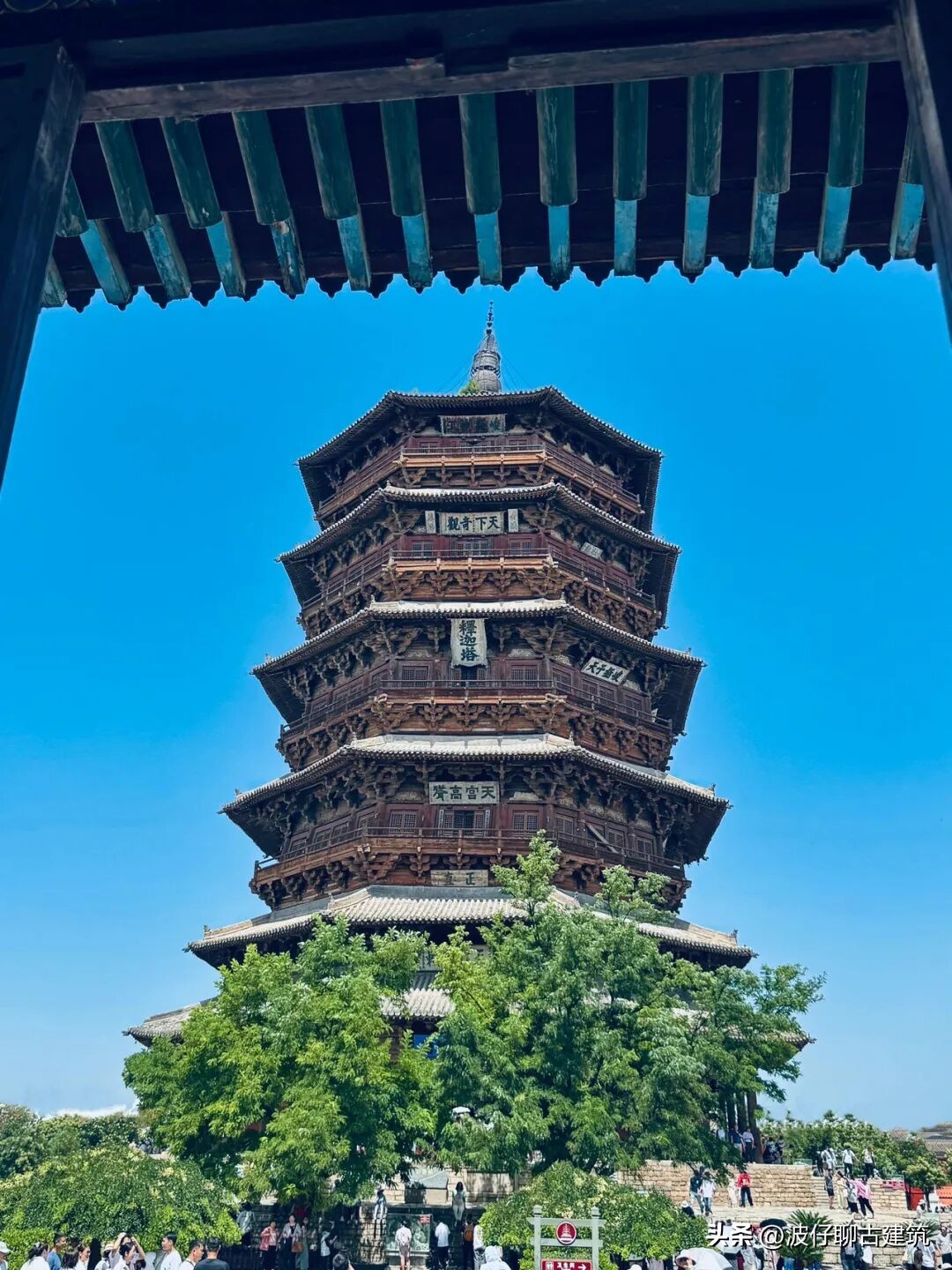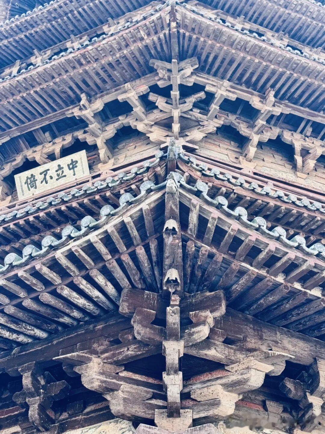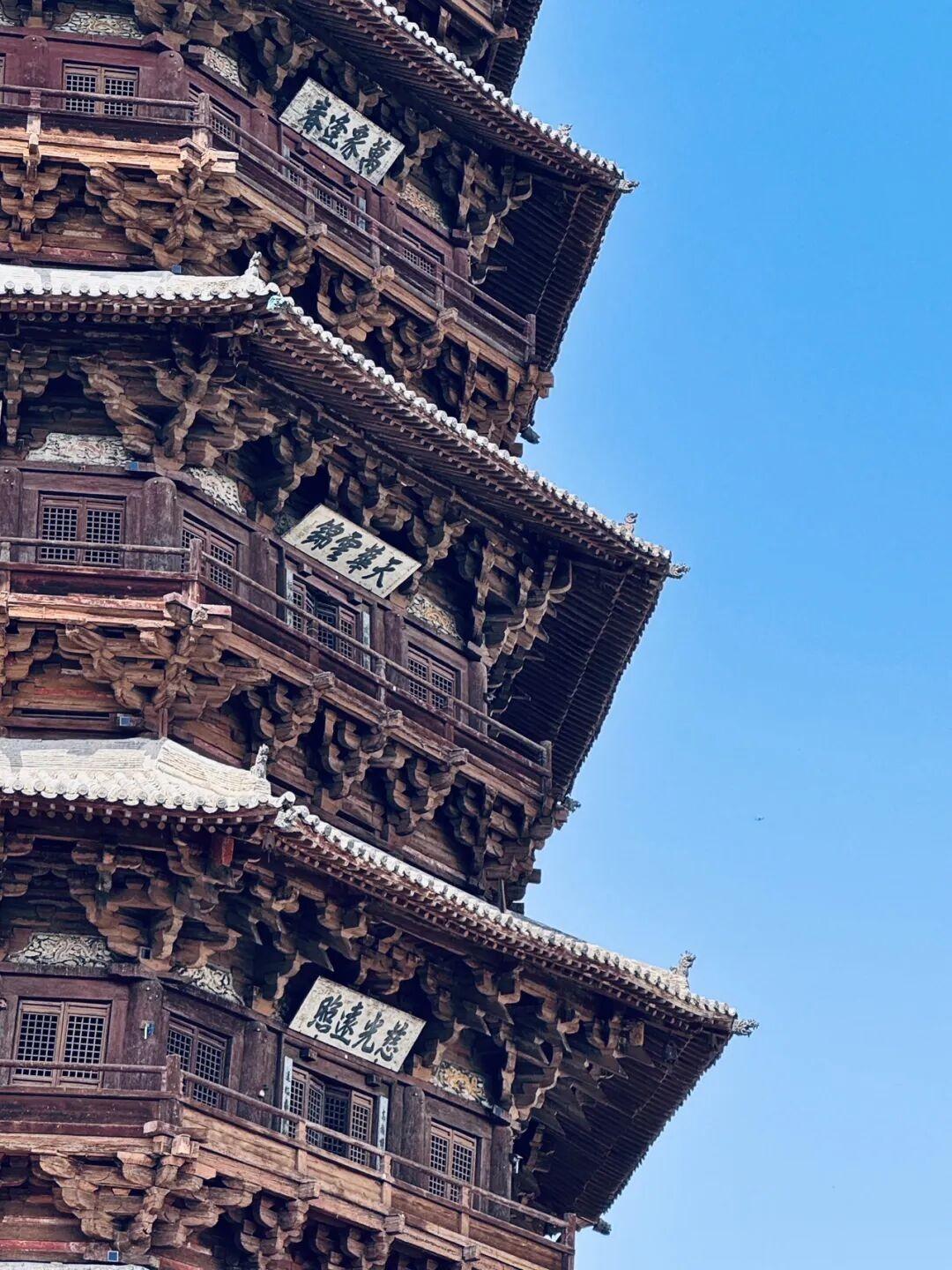 我在塔前站了很久,看着来来往往的游客,有人忙着拍照,有人仰头惊叹,有人默默不语,每个人的感受不一样,但我相信,只要认真看过这座塔的人,心里都会被触动。我们总说中国古建厉害,可到底厉害在哪,不是书本上的术语,不是专家口中的专业解读,而是应县木塔这样实实在在的存在,它不用开口,就足以证明千年前的中国人,有着多么惊人的创造力和执行力,有着多么严谨又浪漫的造物理念。它没有用奢华的材料,没有靠外力的支撑,只凭木头与木头的咬合,就对抗了近千年的自然侵蚀与人为破坏,这背后是工匠们对技艺的死磕,是设计者对天地规律的深刻理解,是一种我们现在越来越少见到的极致精神。