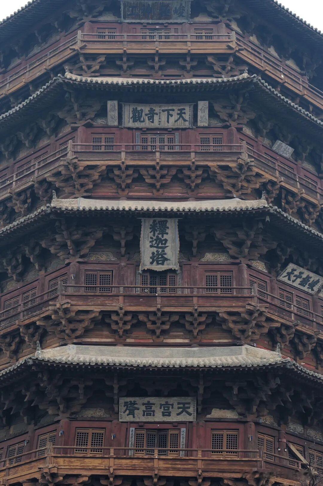 整座木塔用了十万多块木构件,这个数字听着就足够吓人,十万多块形状各异的木头,没有现代的标准化生产,全靠工匠手工打磨、一一匹配,然后用最传统的卯榫结构咬合拼接,严丝合缝到什么程度,风吹不进、雨渗不进,连虫子都很难蛀进去,这就是卯榫的魔力,也是中国古建最让人着迷的地方。它还有个响当当的名号,叫“斗拱博物馆”,全塔上下斗拱种类多达几十种,一层一层,一圈一圈,错落有致地铺展开,远看像是层层绽放的莲花,近看才发现每一组斗拱都有自己的作用,有的承重,有的减震,有的防风,看似繁复华丽,实则每一处都藏着实用的巧思,不是为了好看而装饰,而是为了存活而设计,这种把美学与功能完美揉在一起的智慧,在应县木塔身上体现得淋漓尽致。也正因如此,它才能和比萨斜塔、埃菲尔铁塔一起,被称作世界三大奇塔,这份荣誉不是后人捧出来的,是它靠着一千年的岁月扛出来的,是实实在在的实力配得上这样的名号。