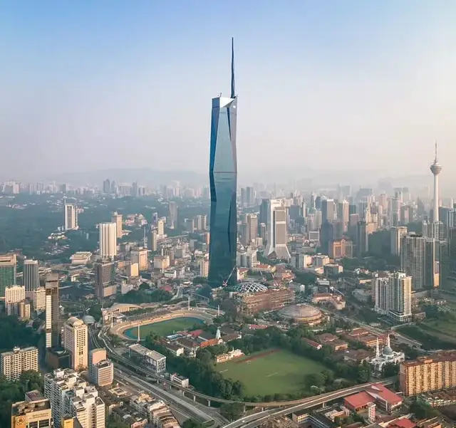 位于吉隆坡的Merdeka 118大厦高678.9米(其中塔尖为116米),共118层,2023年12月竣工后,取代上海中心大厦(632米)成为世界第二高楼,仅次于阿联酋迪拜的哈里法塔(828米)。项目由Fender Katsalidis事务所设计,外立面以钻石切割般的玻璃幕墙呈现,寓意马来西亚多元文化的交融。