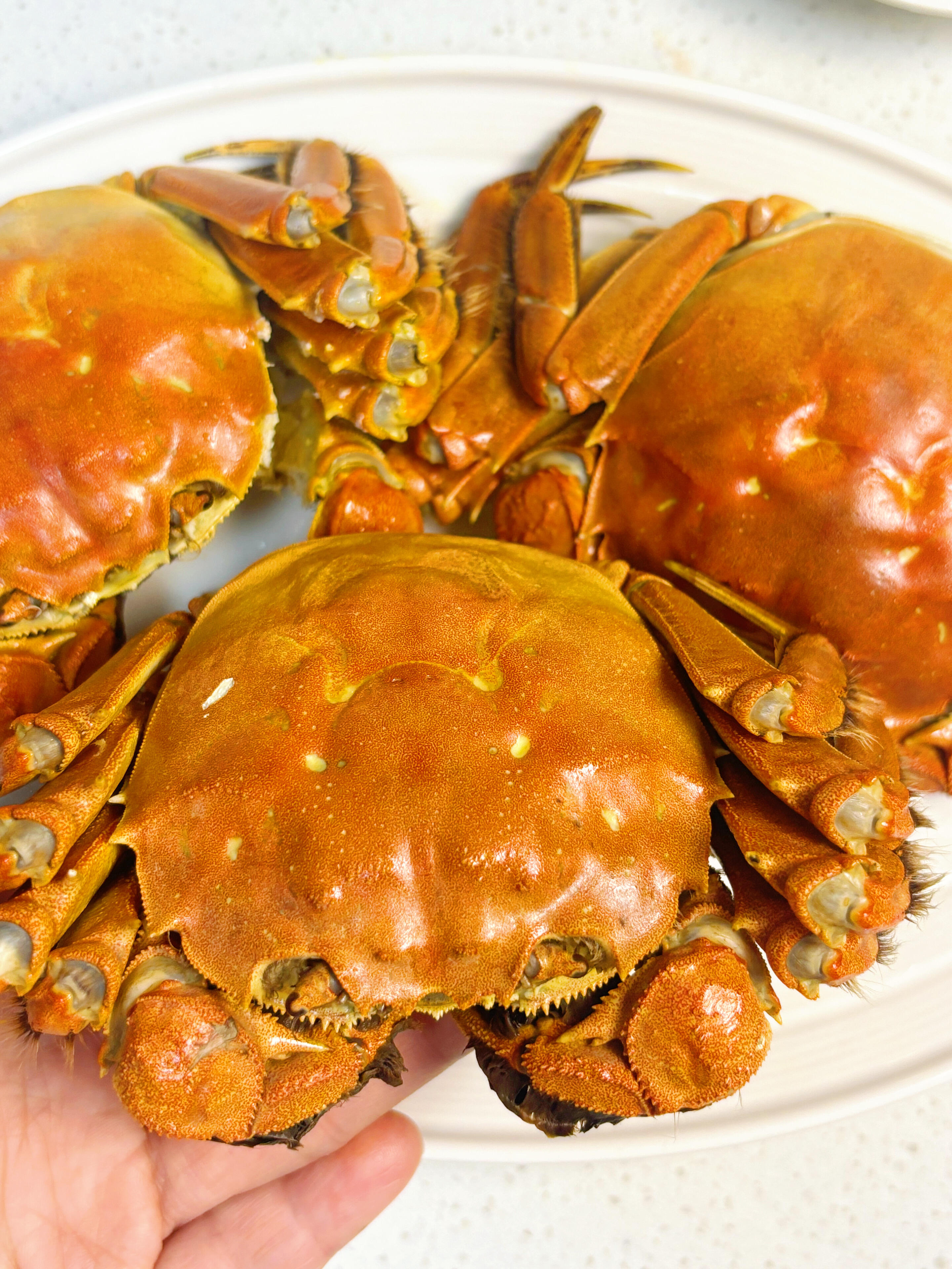 最后唠叨几句:螃蟹性寒,一次别吃太多,两三只足矣。吃完最好喝杯姜茶暖暖胃,或者来碗红糖姜水。还有,螃蟹千万别和柿子、浓茶一起吃,容易闹肚子。蒸螃蟹的水里加的那点葱姜水,其实也可以当茶喝,驱寒效果一级棒!
